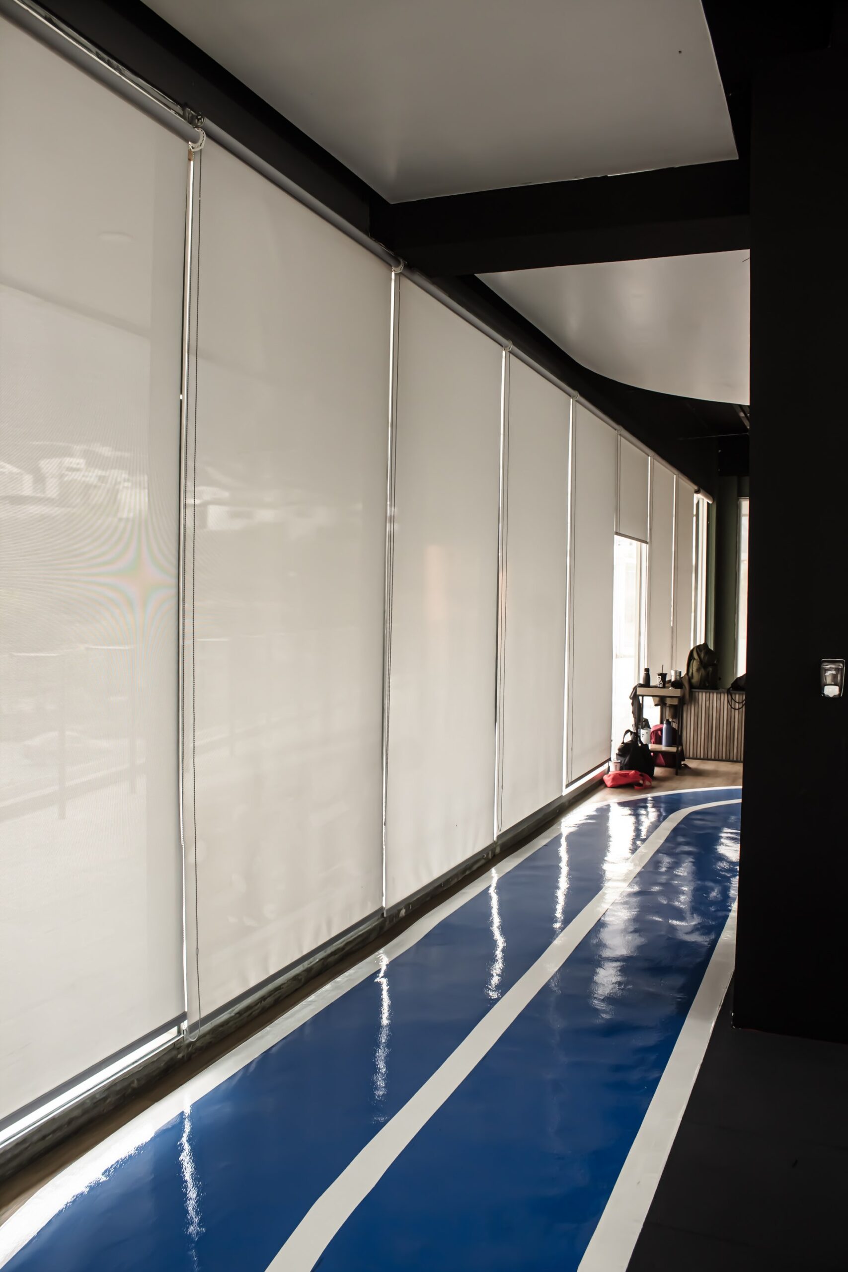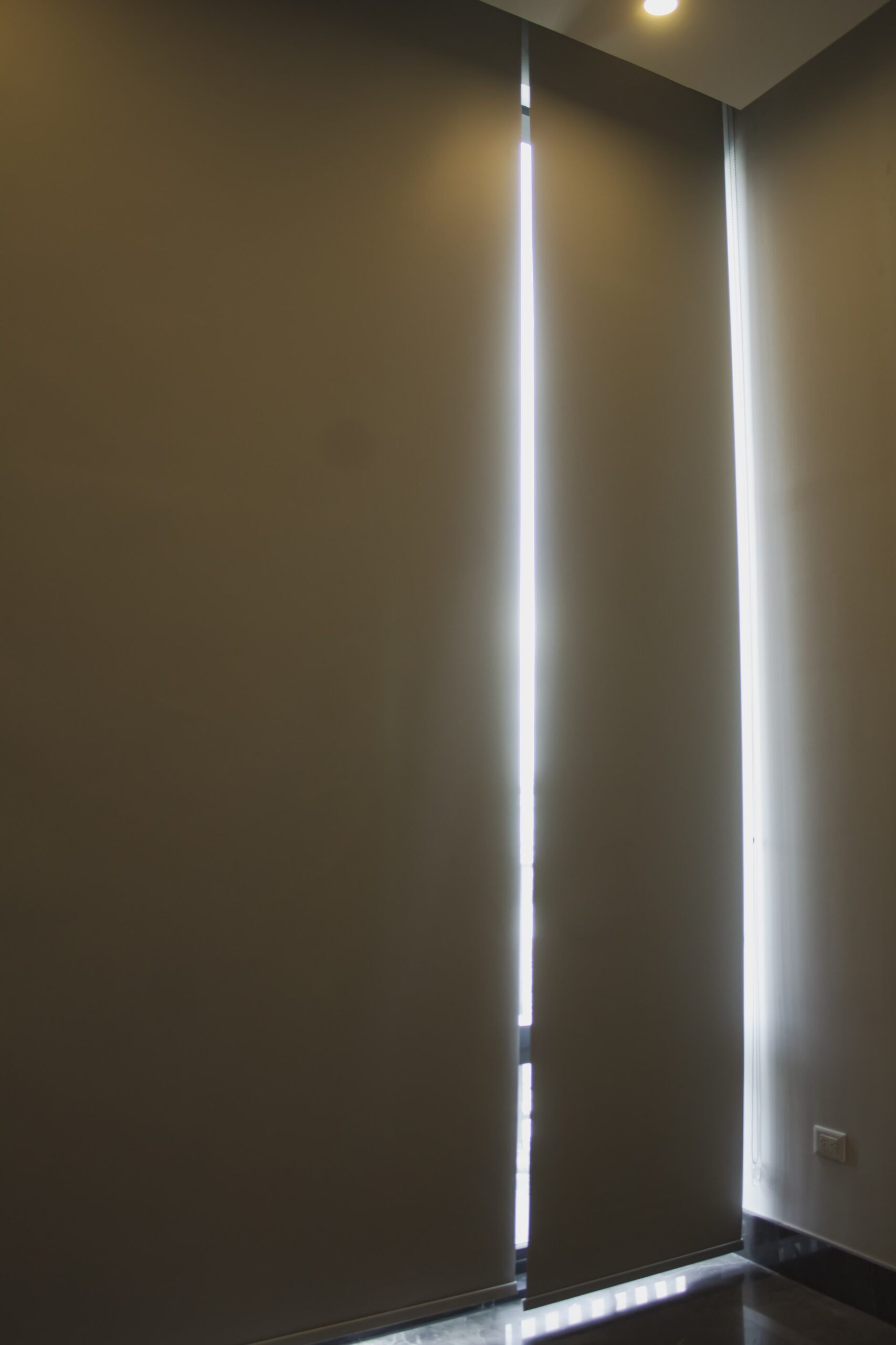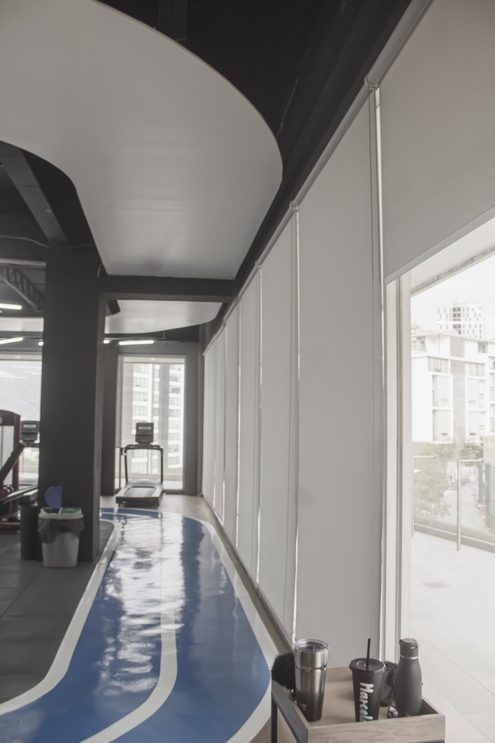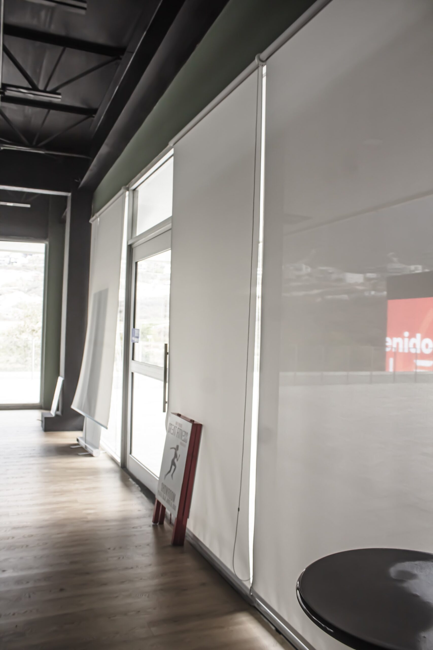 Se compone de 2 persianas: la primera es un tejido traslúcido o malla solar (utilizado durante el día) y la segunda es un tejido blackout usada mayormente en noche o SALA juntas.